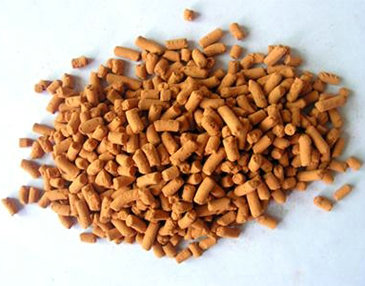 氧化鐵脫硫劑是以氧化鐵為主要活性組份,添加其它促進(jìn)劑加工而成的氣體凈化劑。在20℃~100℃之間,對硫化氫有很高的脫除性能,對硫醇類有機(jī)硫和大部分氮氧化物也有一定脫除效果。